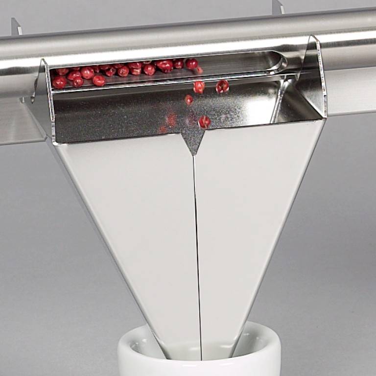 Das separate Entleeren der Multisammler-Kammern kann mittels Quali-Paper oder Verschluss-Hülsen erfolgen. Noch komfortabler und auch viel schneller geht es mit dem Entleer-Gestell. Die Proben in den Sammelkammern können direkt in die Probengefäße entleert werden. Multisammler einfach auf das Entleer-Gestell auflegen, Probengefäße unter die Trichter stellen, Kammern öffnen – fertig. Das spart kostbare Zeit, die Proben werden durch nichts kontaminiert, sie werden nicht vermischt und nichts geht verloren. Die einzelnen Trichter können variabel auf die unterschiedlichen Achsabstände der Sammelkammern eingestellt werden. Somit passt das Entleer-Gestell zu den Multisammlern mit 550 mm und 850 mm Länge. Verschraubt man mehrere Entleer-Gestelle, können beliebig lange Multisammler entleert werden.