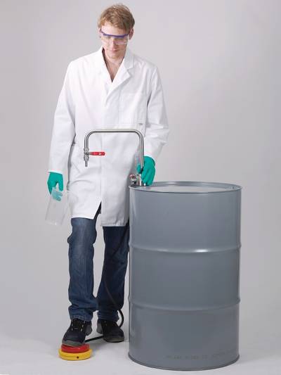 Die Lösemittelpumpe mit Fußbetrieb ist speziell für das Abfüllen von hochreinen Flüssigkeiten wie z.B. Lösungsmitteln geeignet.