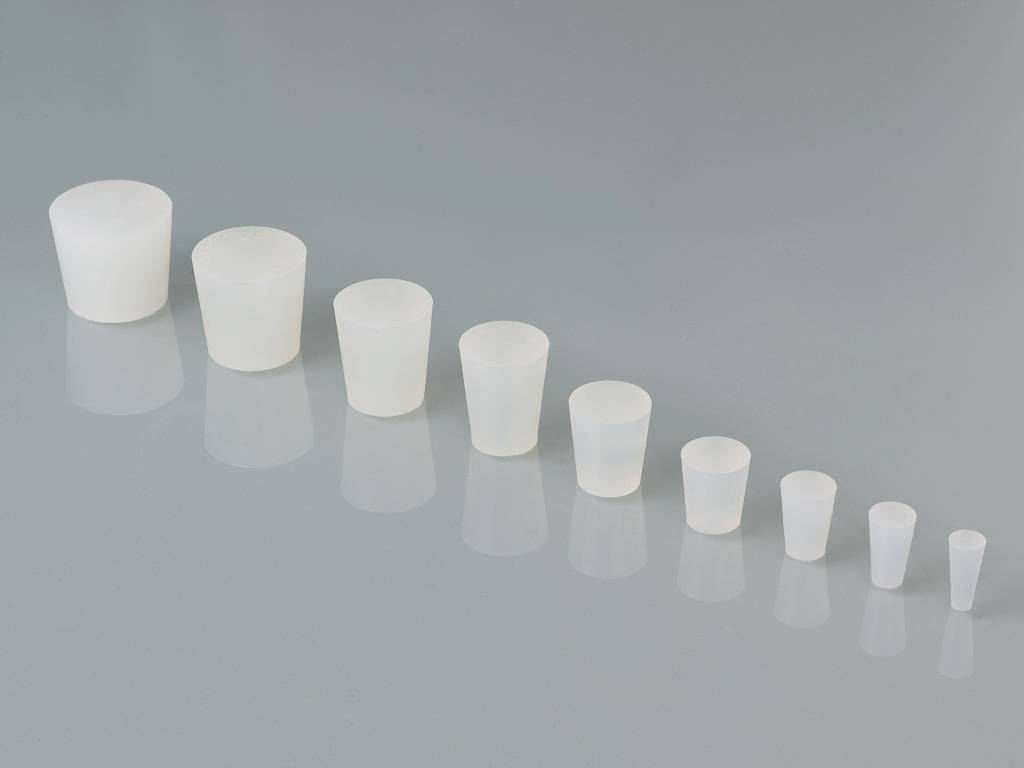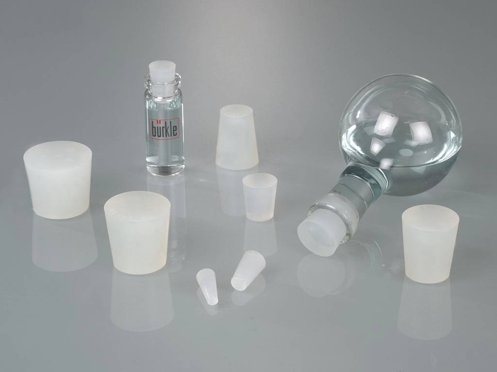 Die Stopfen sind durchscheinend, chemisch-biologisch neutral, lebensmittelecht nach BfR-Empfehlung XV und FDA § 177.2600.