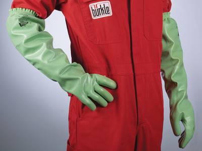 Mit langer Stulpe. Sicheres Arbeiten mit Fetten, Mineralölen, Lösungsmitteln und vielen Säuren und Laugen.
