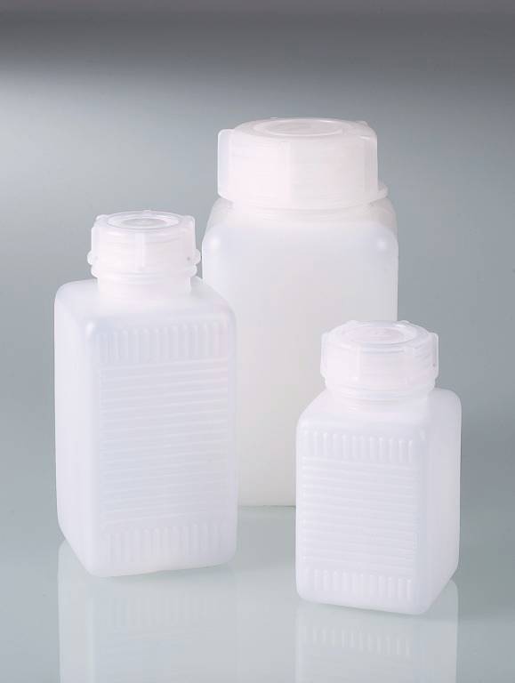 Preisgünstige Vierkantflasche für Verpackung und Lagerung von Flüssigkeiten, Pulvern und Granulaten.