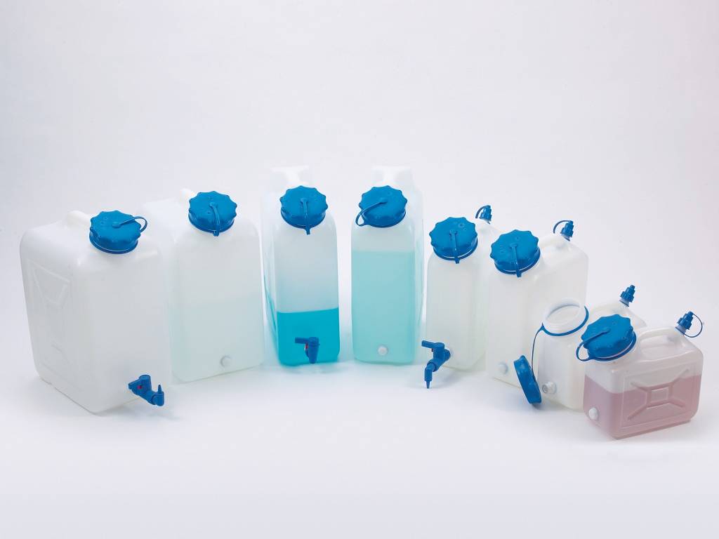 Weithalskanister mit extrem weiter Einfüllöffnung (88 mm), ermöglicht einfache Innenreinigung, die besonders bei der Lagerung empfindlicher Substanzen wichtig wird. Tragebügel und Schraubverschluss gewähren einen sicheren und bequemen Transport. Der Weithalskanister kann auch sehr gut als Abklärkanister verwendet werden. Über einen Gewindeanschluss kurz über dem Boden kann ein Ablasshahn oder anderes Zubehör mit 3/4" Innengewinde angeschlossen werden.